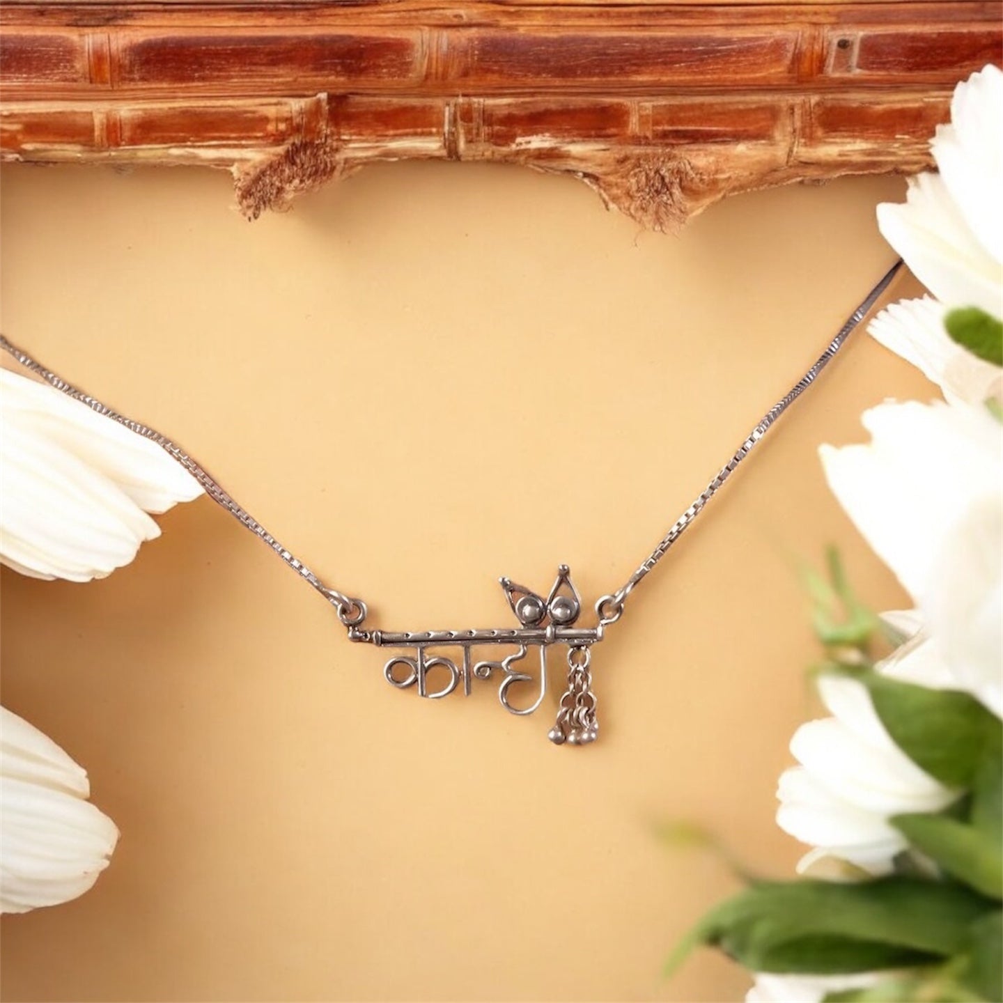 92.5 Pure Silver Kanha Name Necklace – A Divine Connection to Krishna ✨🙏
