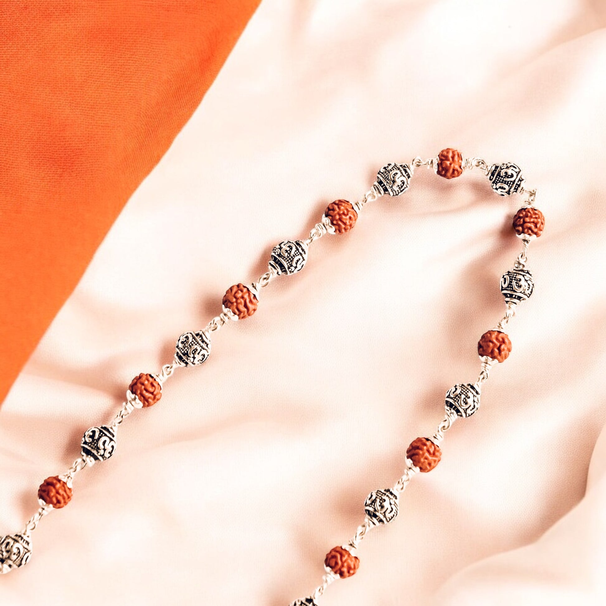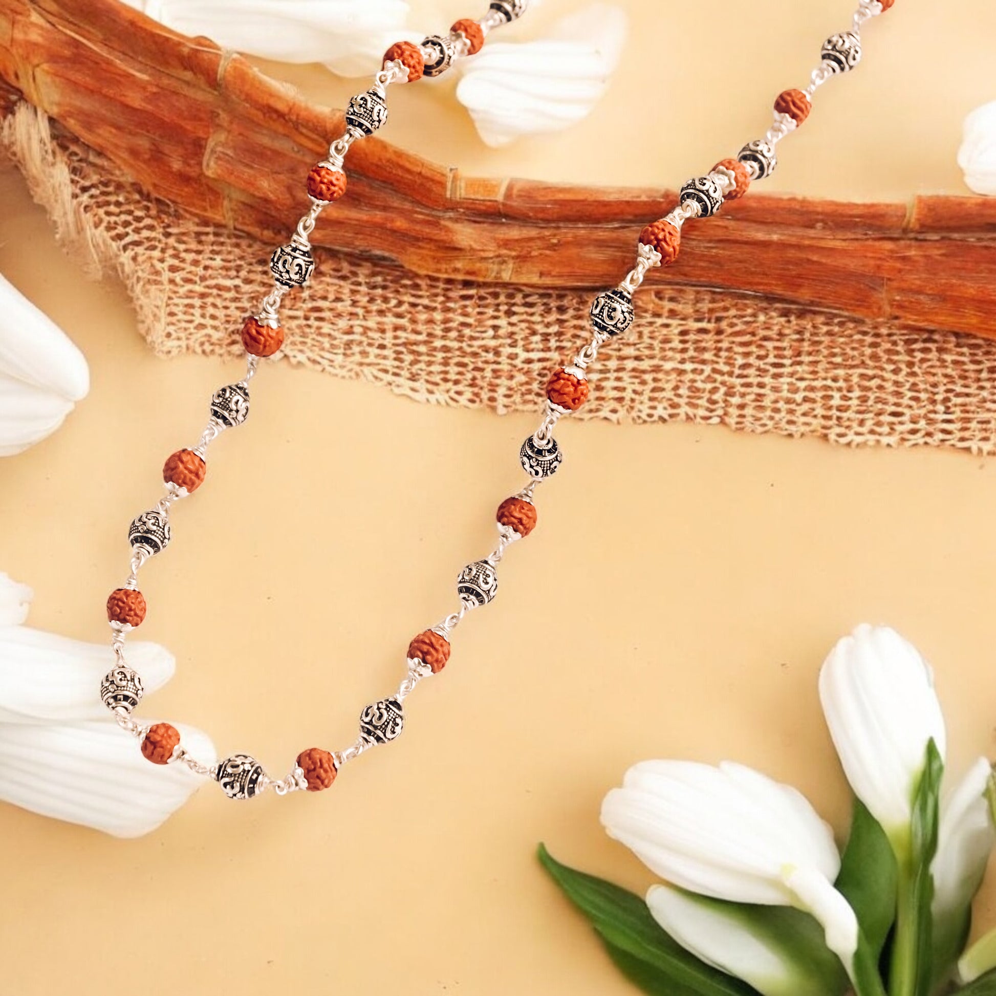 OM beads Rudraksha Silver Mala