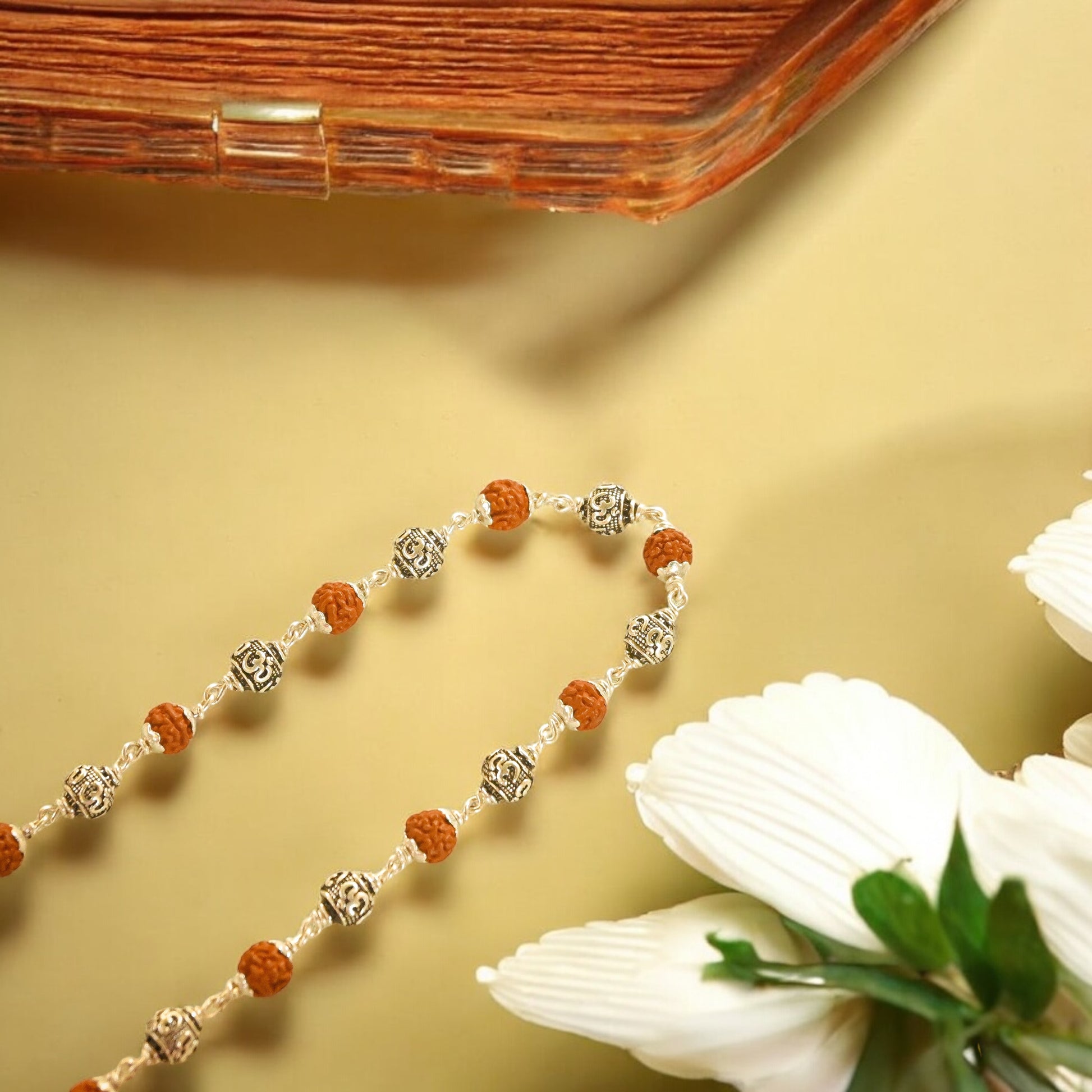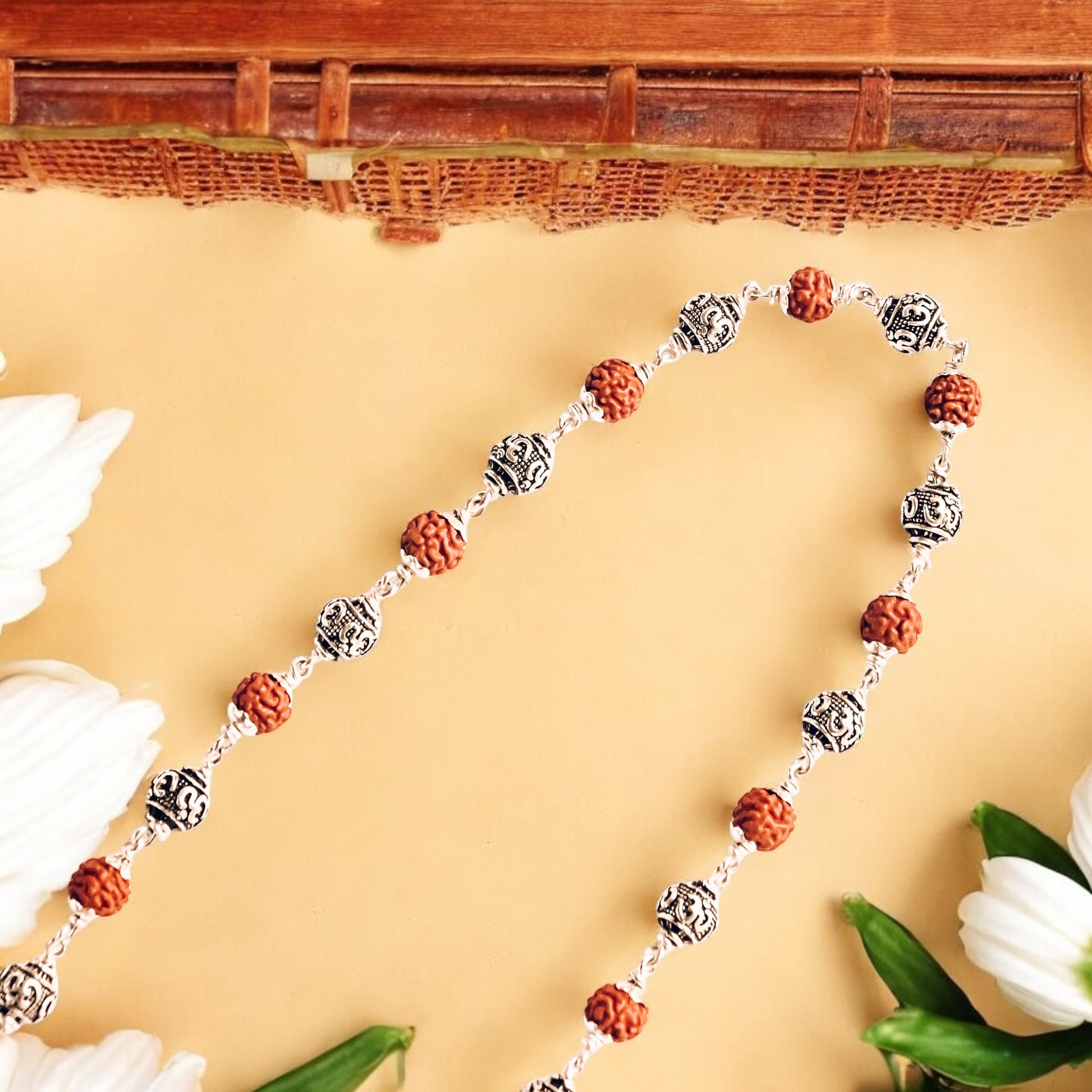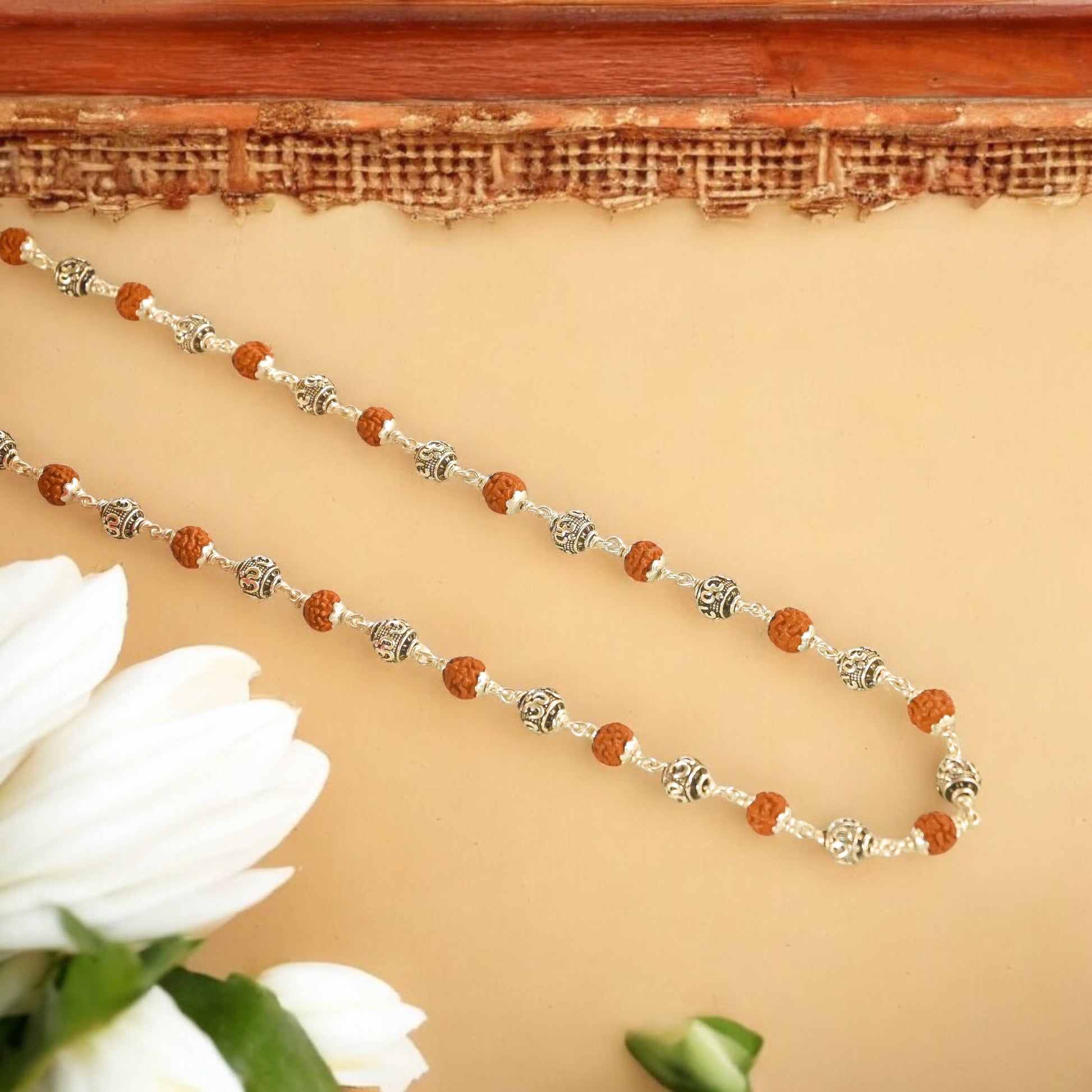 - Material: 5 Mukhi Rudraksha Beads + Om Silver Beads